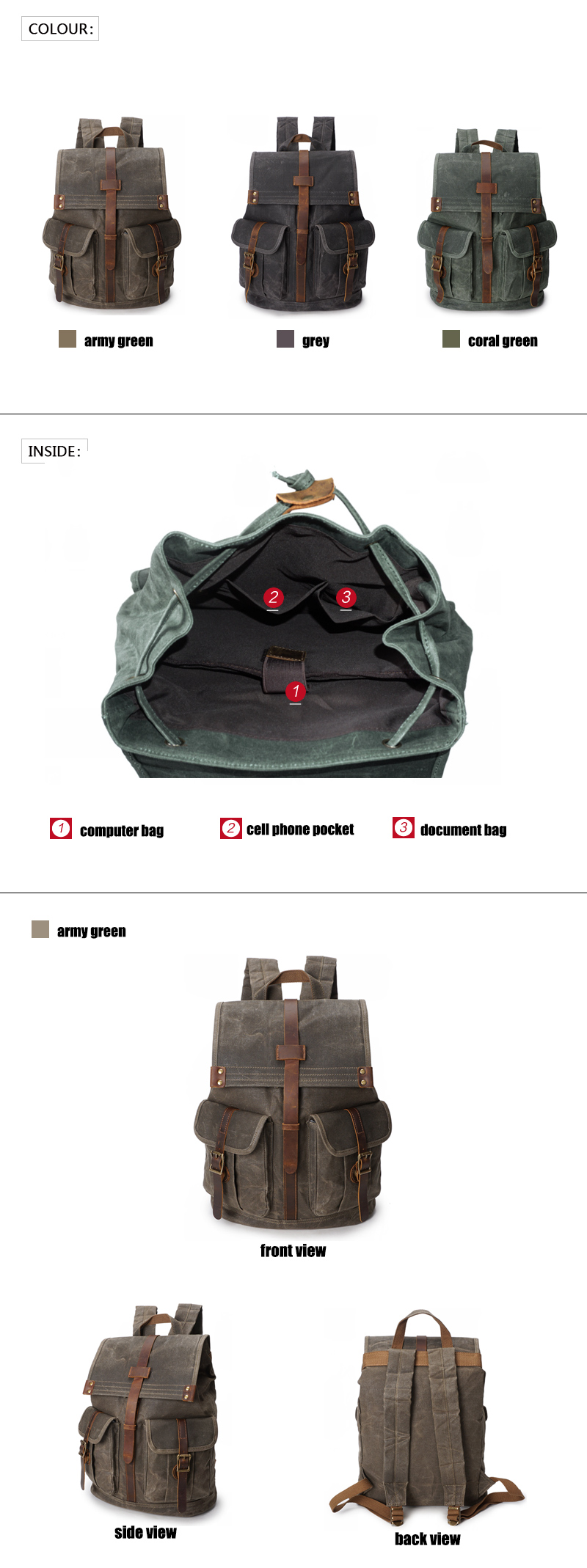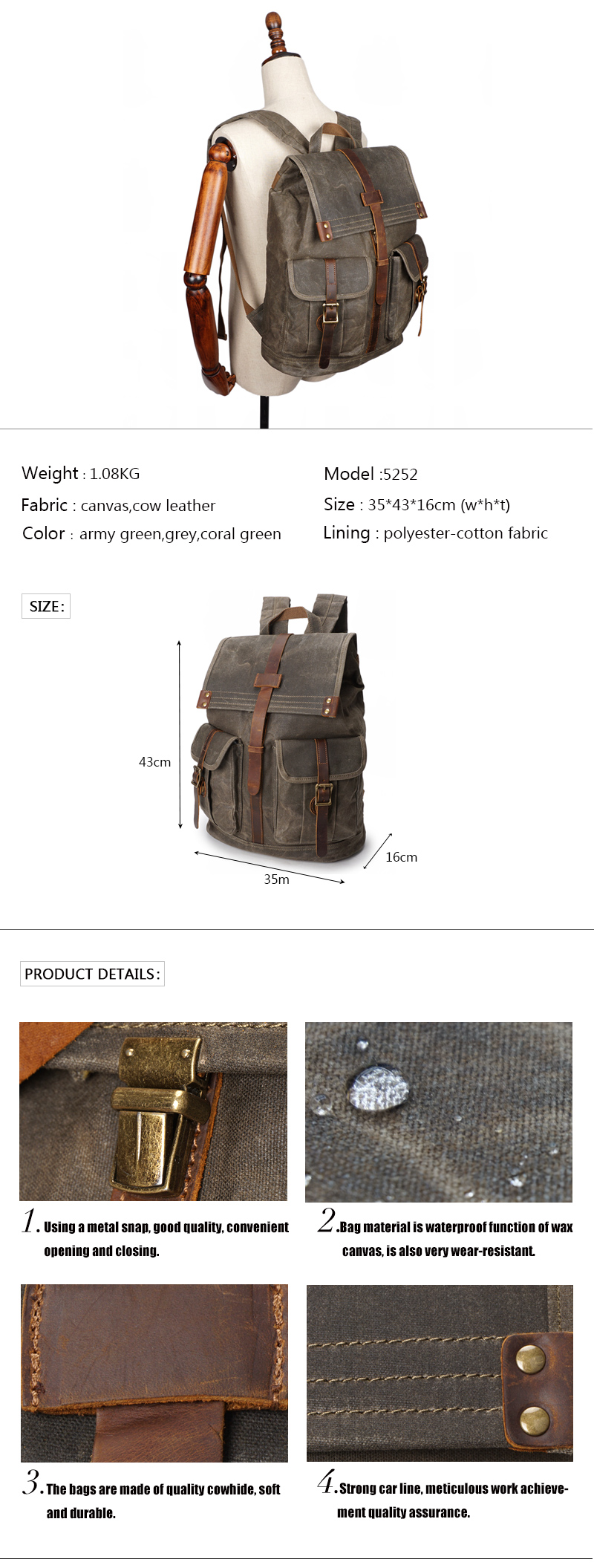 | Product name | Vintage waxed canvas backpack |