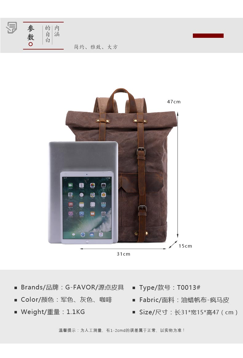 Product name Vintage waxed canvas backpack