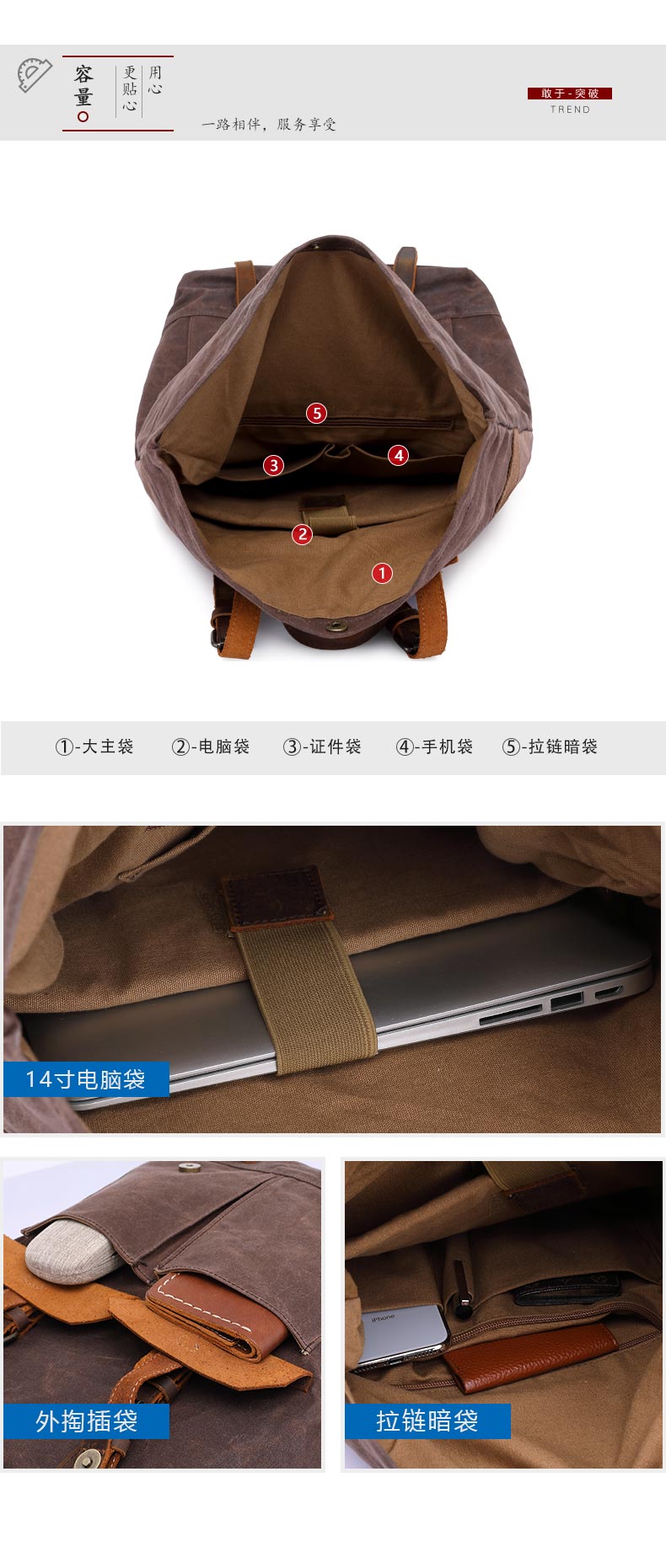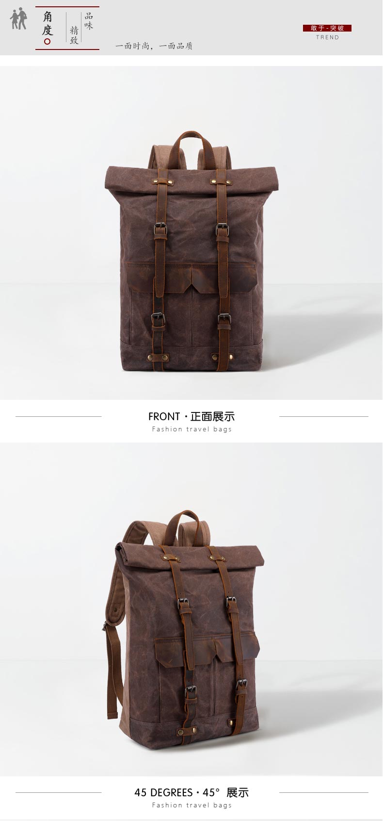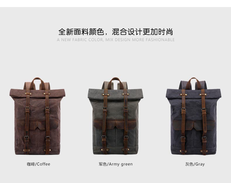 Vintage Casual Travel Waxed Canvas Bag Hiking Backpack for Men