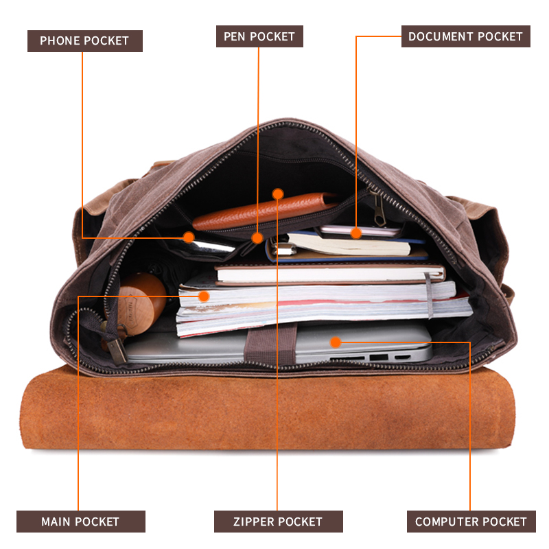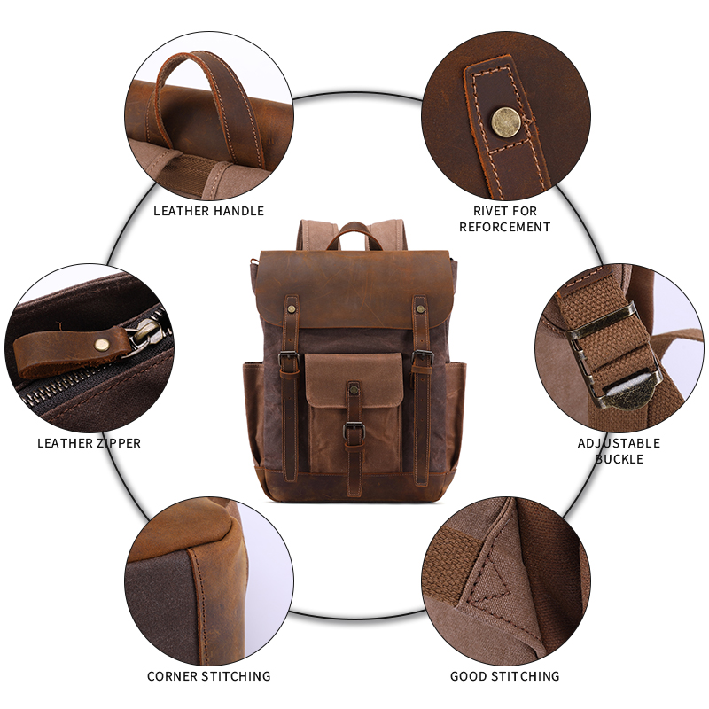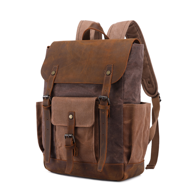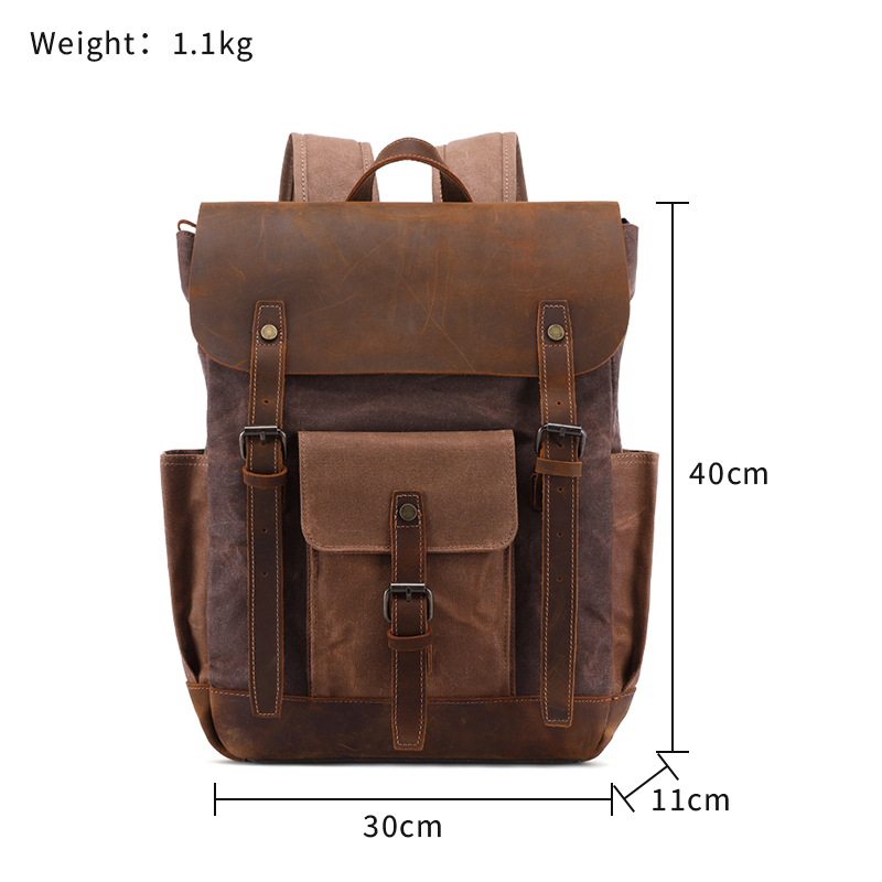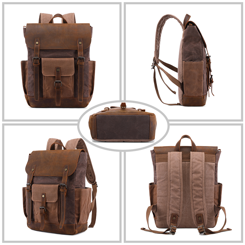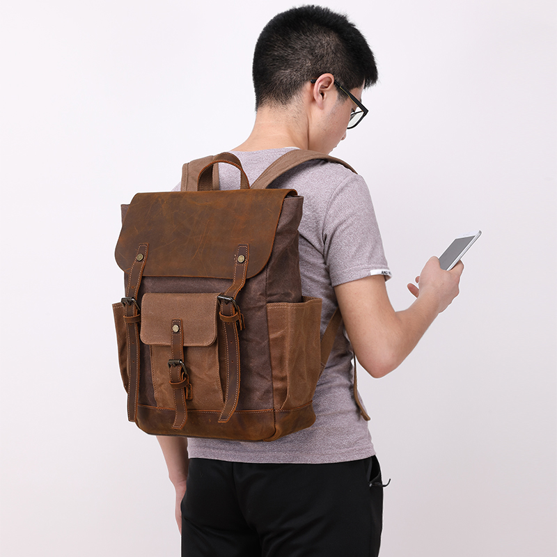 Vintage Outdoor Custom Travel School Waxed Canvas Bag Laptop Backpacks