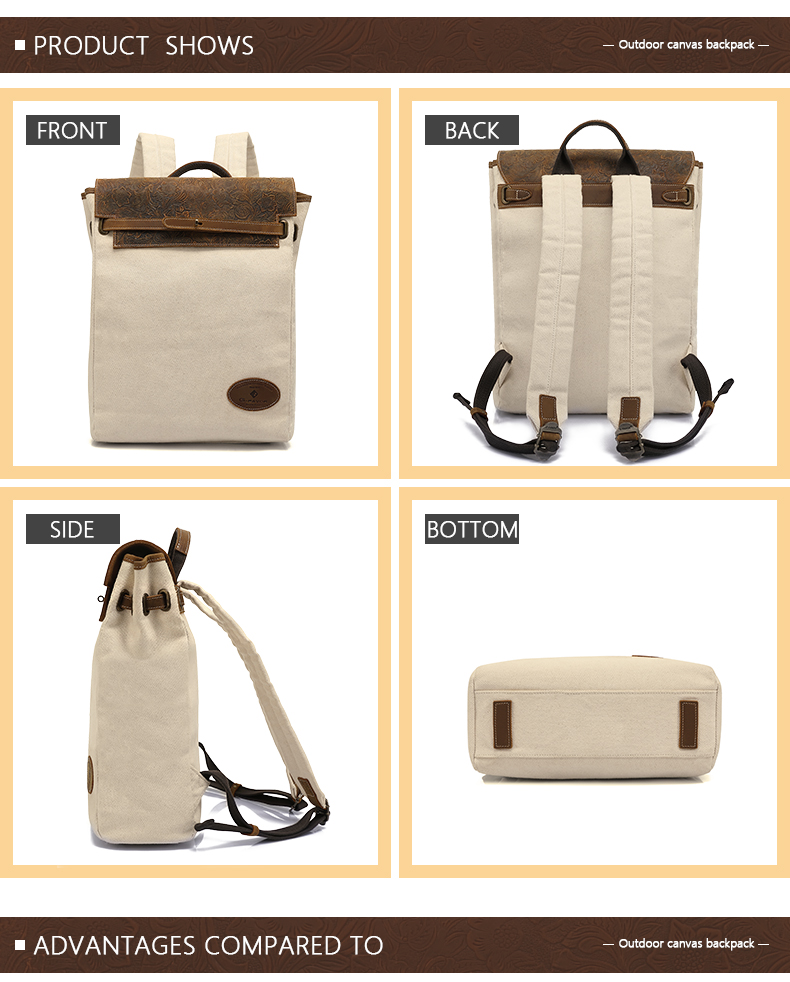 Vintage Outdoor Sports Backpack Travel Canvas and Leather Backpacks