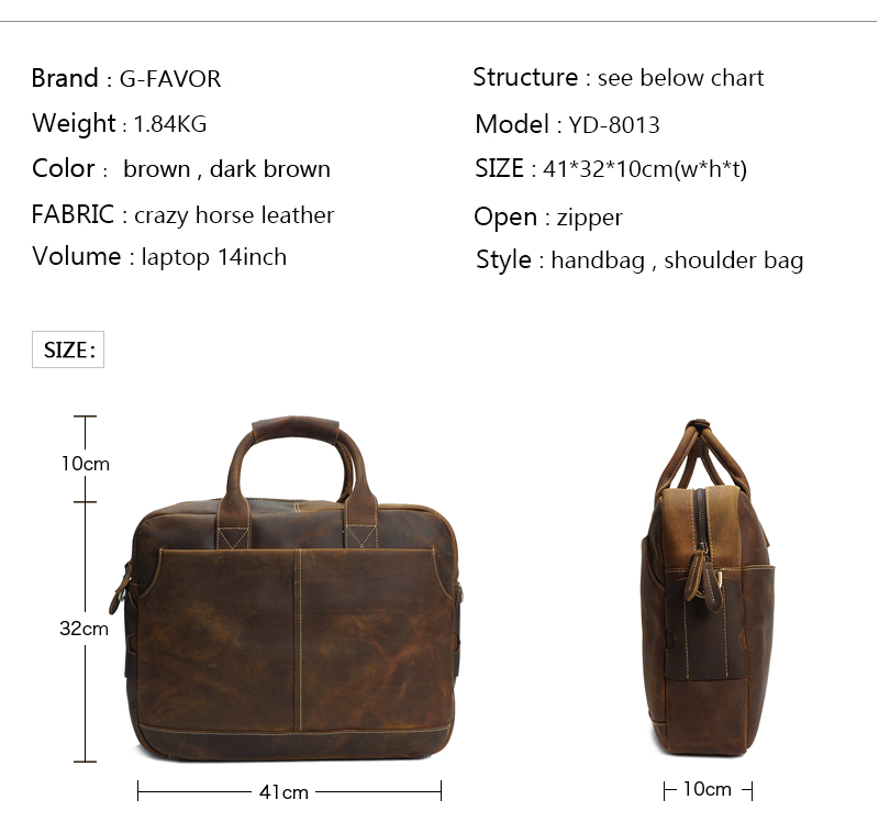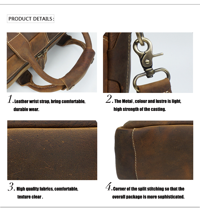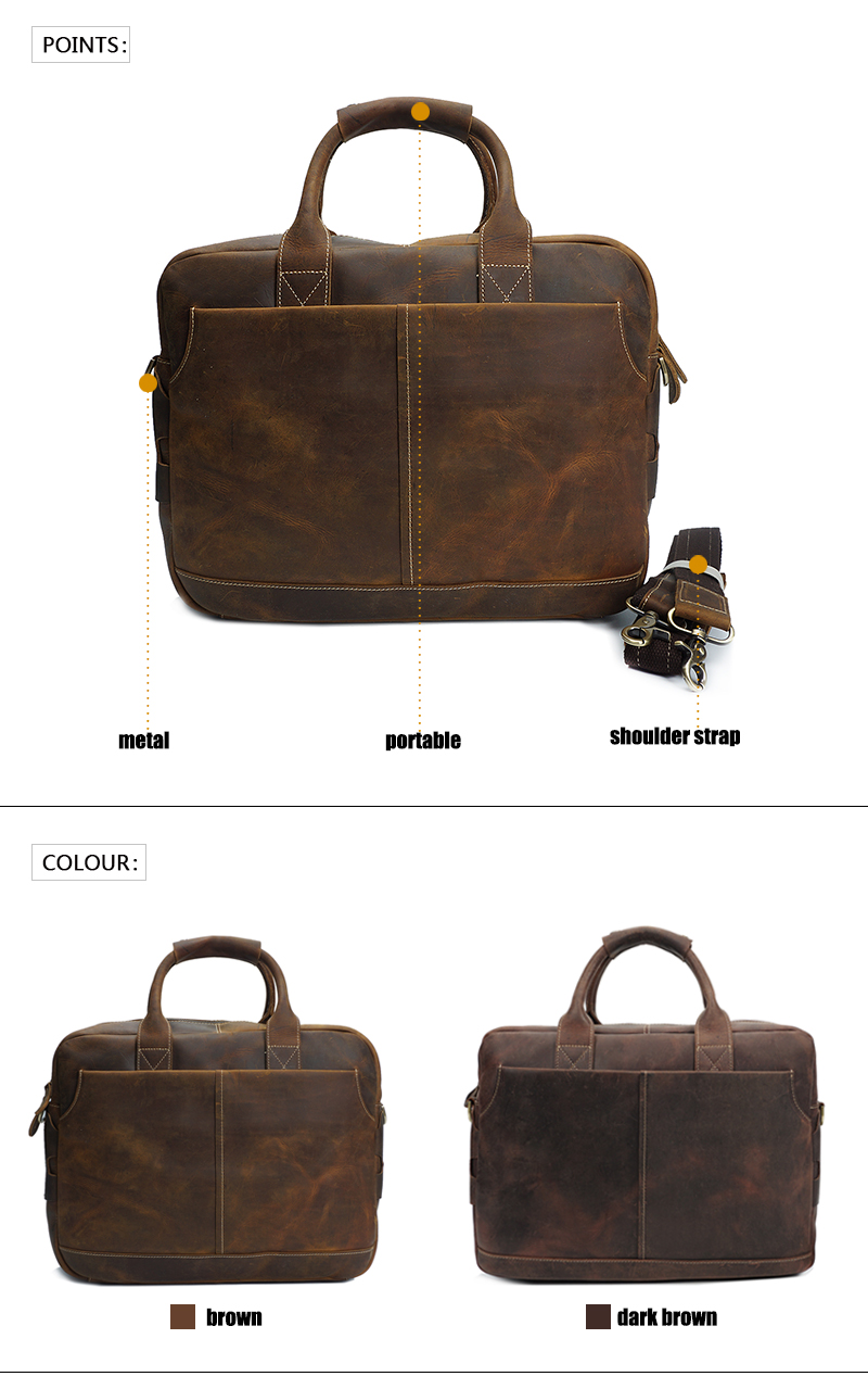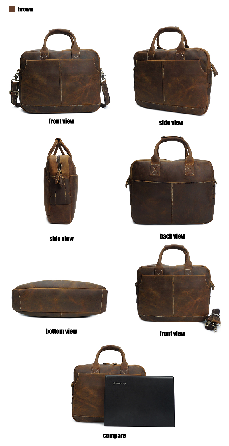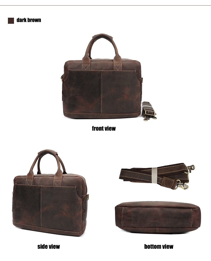This vintage cowhide genuine leather briefcase laptop bag is a classic and stylish accessory designed for men. Made from high-quality cowhide leather, this bag has a timeless and sophisticated look. The spacious interior is designed to fit a laptop and other essentials, making it perfect for work or travel. The sturdy leather construction ensures durability and longevity. The adjustable shoulder strap allows for comfortable carrying, while the vintage design adds a touch of timeless charm. Whether you’re heading to the office or a business meeting, this briefcase is a practical and stylish choice.