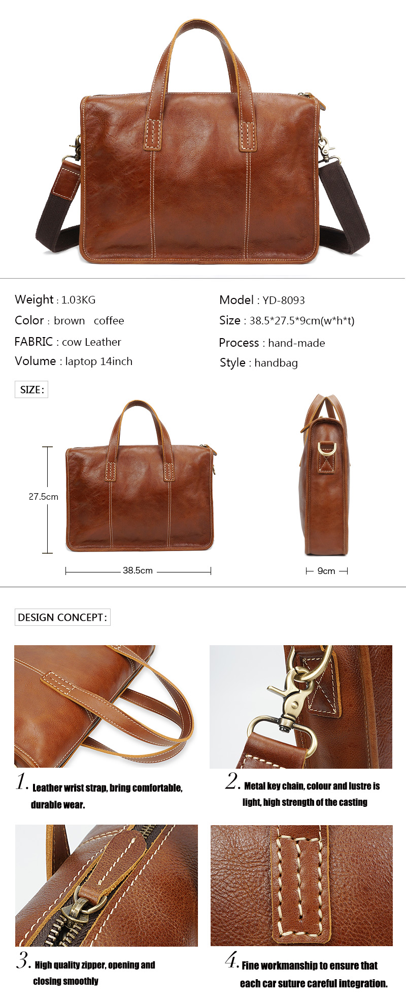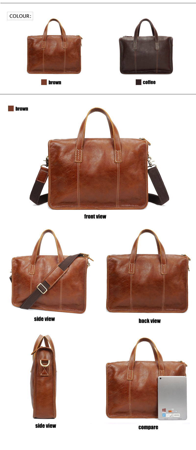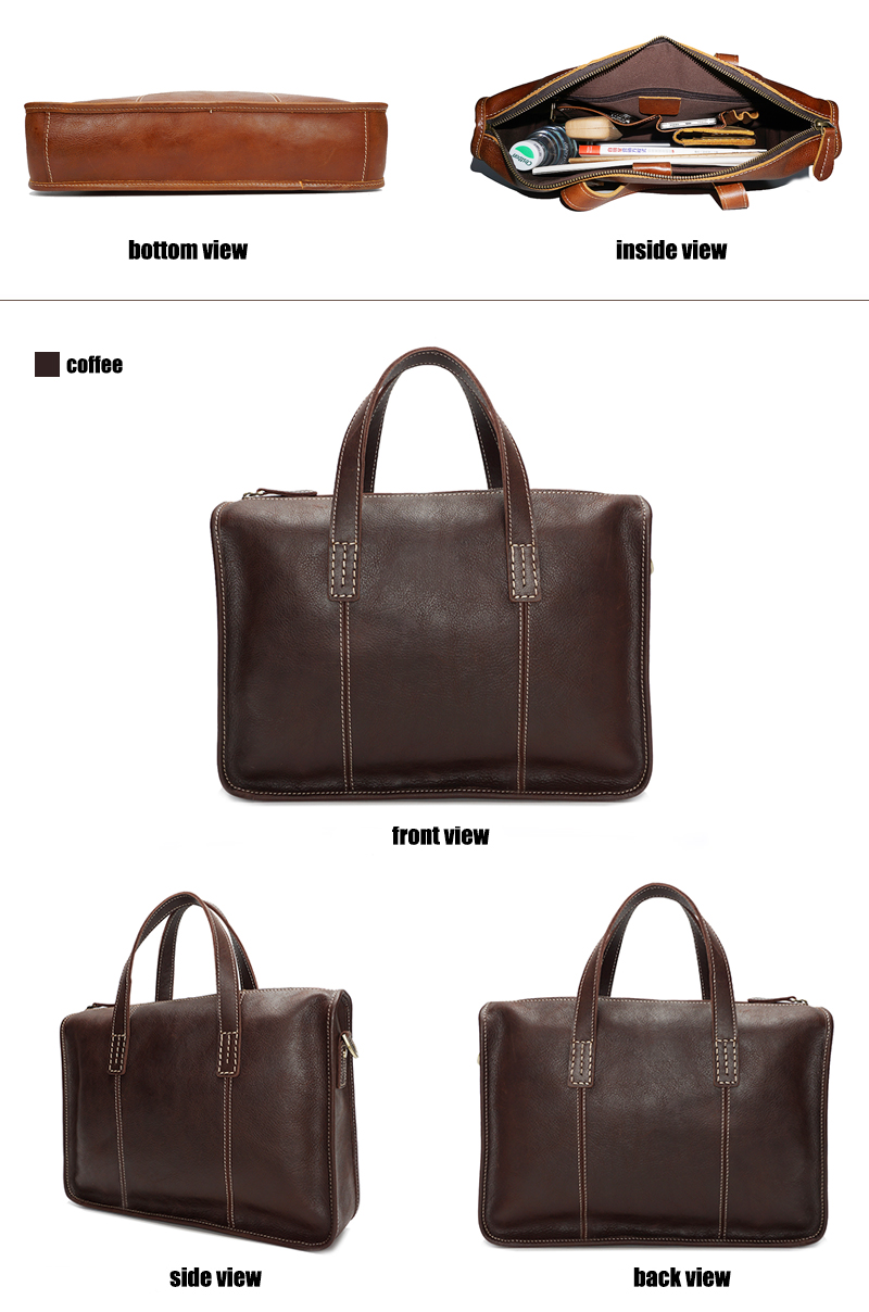 This vintage cowhide genuine leather briefcase laptop bag is a classic and stylish accessory designed for men. Made from high-quality cowhide leather, this bag has a timeless and sophisticated look. The spacious interior is designed to fit a laptop and other essentials, making it perfect for work or travel. The sturdy leather construction ensures durability and longevity. The adjustable shoulder strap allows for comfortable carrying, while the vintage design adds a touch of timeless charm. Whether you’re heading to the office or a business meeting, this briefcase is a practical and stylish choice.